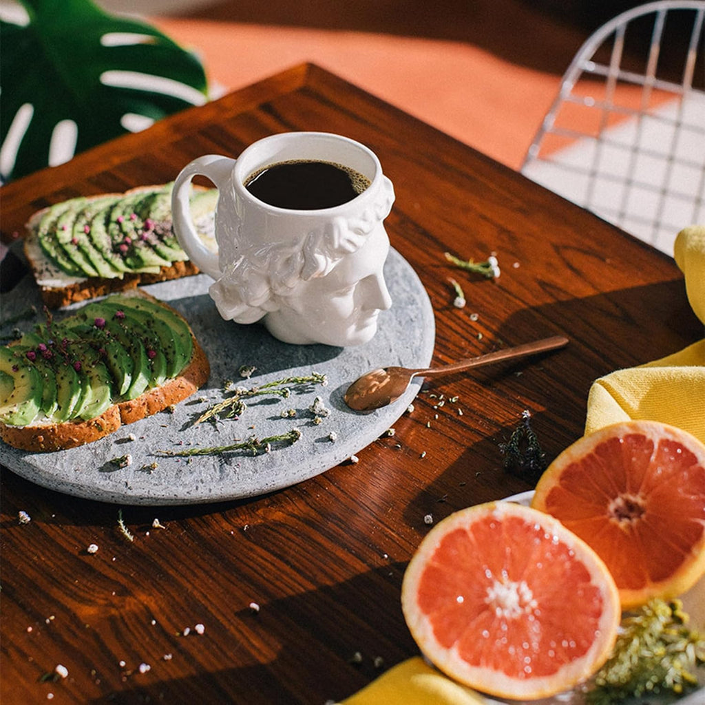 This white ceramic mug features the face of the Greek god Apollo. Often associated with the god of healing, the Apollo mug may not cure all of your ills, but it will definitely help you sip in style.