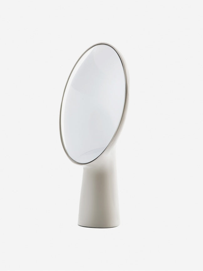 Created by Ionna Vautrin and produced by Moustache, Cyclops takes its name from the convex mirrors that used to be known as 'witch's eye' mirrors. Cyclops is an enigmatic that mirror that gives you the strange sensation that a third person is watching you from the other side. The convex mirror stands on a conical terracotta base like a statue of a figure observing their surroundings. The windsocks of boats were the inspiration behind Ionna Vautrin's design for the shape of this unusual object, which is handcrafted in Italy.